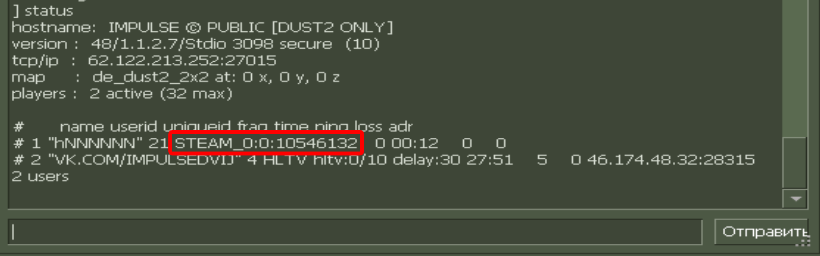 3. Найти свой ник и STEAM ID (Выделен красным)